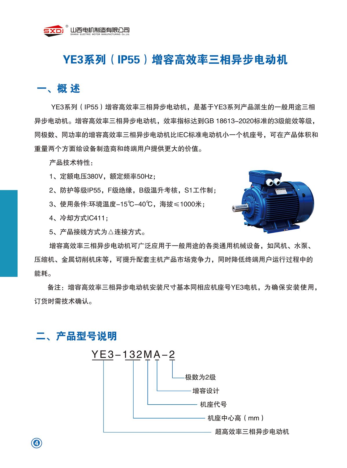 封閉式自扇冷卻籠型轉(zhuǎn)子高效三相異步電動(dòng)機(jī),設(shè)計(jì)符合IEC、GB等相關(guān)標(biāo)準(zhǔn)要求。YE3系列(IP55)增容高效率三相異步電動(dòng)機(jī),效率指標(biāo)達(dá)到GB18613-2020《電動(dòng)機(jī)能效限定值及能效等級(jí)》中3級(jí)能效水平。